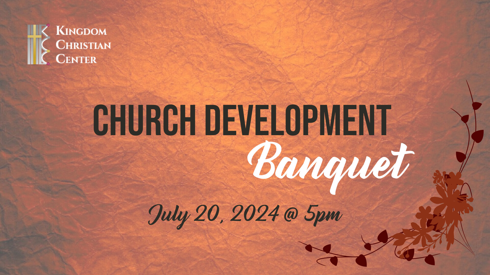 Join us for the church Development Banquet July 20, 2024 from 5-7 pm with a mixer beginning at 4pm at the LaQuinta Inn, Tacoma Wa, Help Us in supporting the efforts in expanding the work and facilities of the Kingdom Christian Center & Development Center